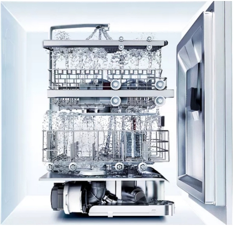在五重洁净系统的基础上,老板洗碗机W712设计出了九大洗涤程序,分别为自清洁、环保洗、自动洗、混合洗、强力洗、58快洗、轻柔洗、迷你洗、预冲洗。用户根据餐具的数量、形状和脏污程度,选择合适的模式。比如,针对重油重污的餐具,选择强力洗模式,高压喷洗与70℃水温的热水相互配合,轻松分解顽固污渍。一般情况下,选择自动洗模式,水温在40℃到65℃之间,日常餐具清洗干净的同时不会受损。