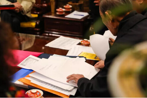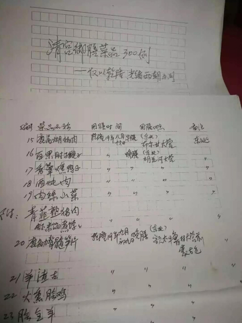 随后李老先生将他带来的所有资料向赵新林大师进行了详细介绍,其中包括中华饮食文化文献摘录、中华酒文化习作诗稿、中华名厨名菜目录、中国老字号和中华老字号珍贵文献及国内外食品产品档案等重要学术资料。特别是《皇史宬清宫御膳菜单手抄稿》最为珍贵。