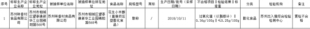 12月3日,记者从苏州市食药监局获悉,最新食品安全抽检公告限显示,苏州味香村食品有限公司生产的一批次花生小米酥检出过氧化值超标。