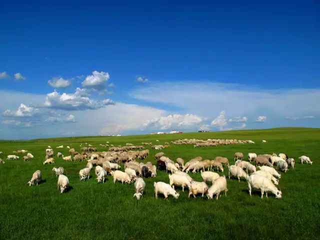 每天牧民还是骑着马,带着牧羊犬,驱赶着牛羊,离开居住的蒙古包,到更肥美的草原深处放牧。牛儿羊儿在无垠的大草原上慢悠悠地边走边吃,渴了,挑一处泉眼饱饮;困了,随地而卧睡上一觉。年复一年直到今天依然没变!近乎野生的生活方式,赋予他们快乐、自由与无拘无束,更给予了它们健硕的体格,健康的身躯。