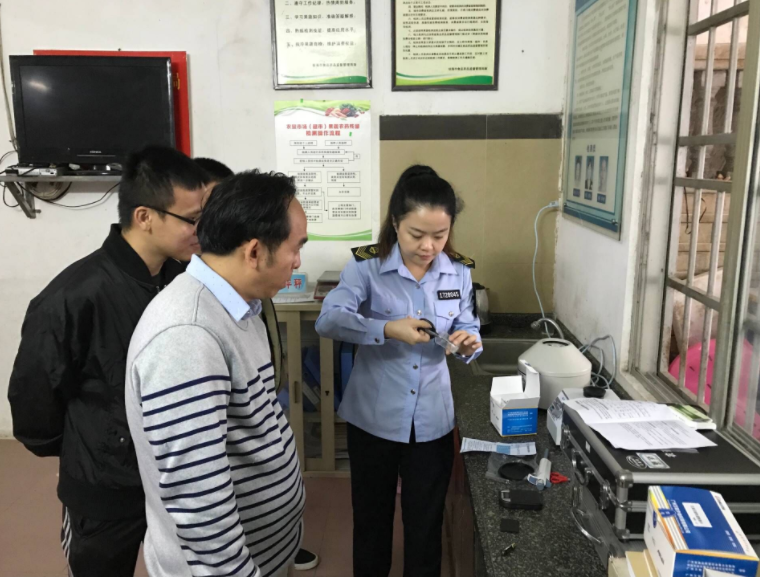 根据《琼海市食品药品监督管理局关于印发深入推进市场超市食用农产品安全快检室建设工作方案的通知》,为进一步督促市场超市严格落实食品安全主体责任,深入推进快检室建设,切实提高市场超市食品安全保障能力和水平,11月28日,塔洋食药监所工作人员到塔洋福松农贸市场快检室指导检测人员开展检测工作。