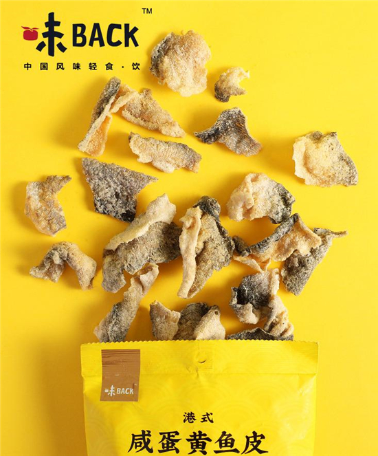 据了解,味BACK的港式咸蛋黄鱼皮找到了香港工厂进行监制,运用现代食品加工技术,将粤港街头的地道小吃制作成休闲零食。