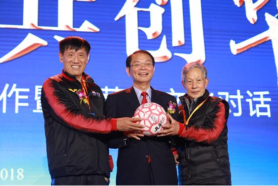 与中国足球名宿互赠礼物