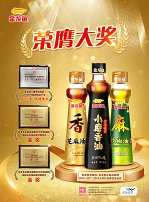 图:金龙鱼芝麻油、金龙鱼花椒油蝉联2016、2017、2018三年行业博览会金奖
