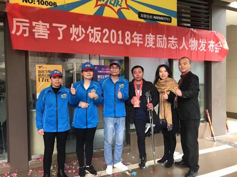 12月10日下午,厉害了炒饭“2018年度励志人物”发布会在厉害了炒饭重庆龙湖源著店举行,这也是陈登超工作的外卖店。厉害了炒饭相关负责人为单腿外卖小哥陈登超颁发“2018年度 厉害了励志人物”奖杯、“厉害了免单金牌(100次)“和1000元励志奖金。重庆电视台、网易重庆在线、重庆晨报、重庆新闻网等多家媒体进行现场采访报道。