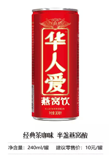 对于礼品而言,漂亮的包装是必备要素。华人爱红罐包装,从颜色搭配到罐身比例,追求完美的黄金视觉点。红色主视觉,即符合华人和国人的传统审美,具有东方韵味,也能让人眼前一亮。再加上每罐添加10毫克燕窝,75毫克燕窝酸,“华人爱燕窝饮,每一口都有燕窝” 的高规格内涵,其10元/罐定价在燕窝市场来说是绝对的高性价比,更符合消费者对优质礼品性价比的认知,也更适合作为伴手礼表达心意。