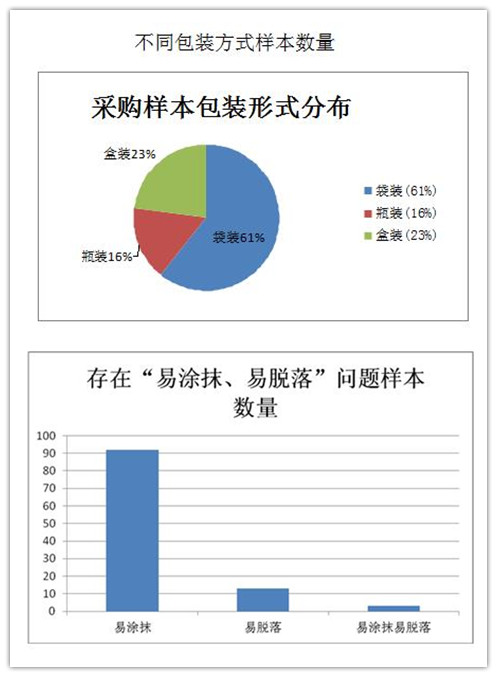 据统计,超市自有品牌授权加工的预包装食品生产日期“易除抹、易脱落”现象较为普遍;盒装牛奶乳品类、散称袋装零食类“易除抹”现象较为普遍;国产和进口预包装食品都存在生产日期“易除抹、易脱落”的问题;塑料或塑料薄膜载体上的生产日期很容易被擦除,而纸、金属载体上的生产日期则相对牢固;瓶装纯净水、瓶装食用油类生产日期较为牢固。
