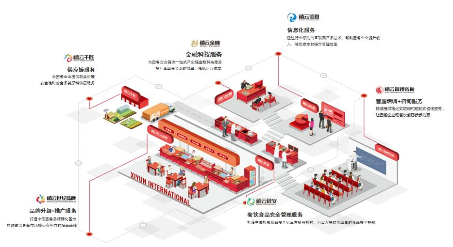 作为团餐产业链综合服务平台,禧云国际主要为团餐企业提供供应链集中采购、品牌整合营销、食品安全管理、人才管理培训、企业信息化建设、金融科技服务等一站式综合服务。公司成立当年,便获得了来自蚂蚁金服、鼎晖投资和阿里巴巴旗下口碑网A轮2亿美元的战略投资。历经一年发展,禧云国际取得了显著成效:截至目前,禧云国际旗下各板块业务已累计服务3,600余家餐饮中心、45,000余家档口门店、覆盖团餐营业收入180亿元、触达团餐消费用户15亿人次,所服务团餐企业客户遍布全国31个省市。