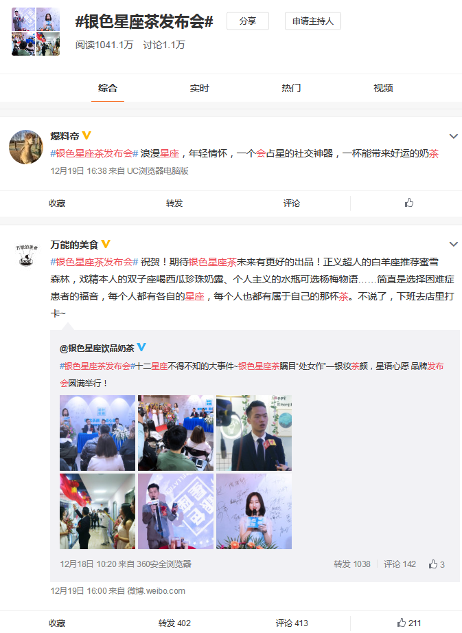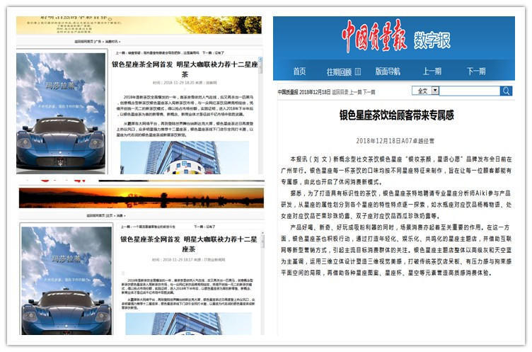 据了解,银色星座茶自推出十二星专属茶后,便成为一众网红茶饮品牌眼中的黑马对手,其以星座结合饮品,开创多元化新茶饮全新模式,目标消费群体根基深厚,且市场对新鲜事物接受程度高,而因此疯狂吸粉奶茶控和星座控。而后,银色星座茶继续优化升级,从优质产品着眼,重磅联手殿堂级星座大师Aiki倾献2019年12星座限量版茶饮,再次吸引扬子晚报、腾讯新闻、东方头条等媒体资讯平台报道。