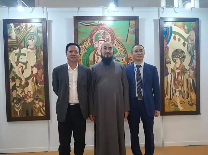 海南省会展局副局长李学峰、释禅雪法师、张治总经理合影