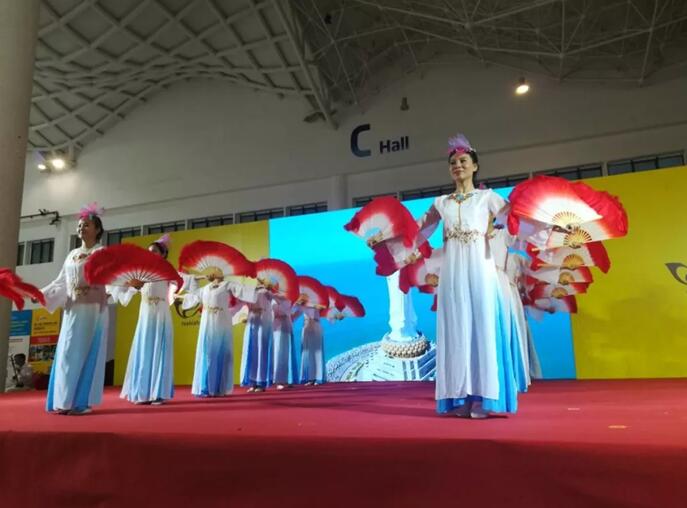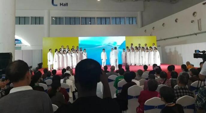 同时,2018海南国际佛事用品暨香品展览会、2018海南国际茶产业展览会也邀请到了海口弥陀堂艺术展团进行演出,以大合唱、独唱、禅舞、巴乌乐器演奏等形式向各贵宾展示海口佛文化风采。他们梵音声声,舞姿曼妙,现场真是好不壮观!