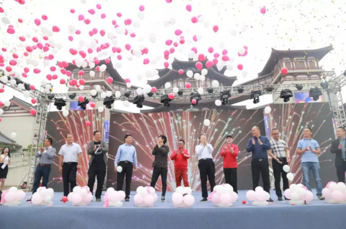 随后,诸位嘉宾、领导纷纷上台,一同按下启动按钮,千只气球迎风飘向天空,标志着第二届茗酒坊购物节正式启动!