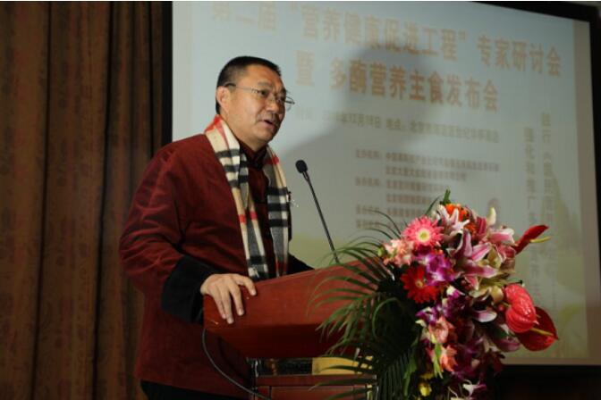 专家研讨环节结束之后,来自北京大爱大成健康管理有限公司的常务副总、多酶康食养俱乐部执行秘书长何信龙先生做了《践行<国民营养计划(2017-2030)>,强化和推广多酶营养主食》的主题分享。何总提到,《国民营养计划(2017-2030)》指出:我国国民营养状况堪忧!也是造成我国慢性病井喷高发和核心原因。《计划》提出:针对不同人群的健康需求,着力发展保健食品、营养强化食品、双蛋白食物等新型营养健康食品,强化营养主食、双蛋白工程等重大项目实施力度。为此,针对我国国民普遍全谷物食物摄入不足的现状(谷物食物供给比:城市47%,农村58.8%,食物营养指南推荐为60%。并且吃的还不是全谷物,而是精致的碳水化合物即精米精面)以及长期食用精米精面的误区(将谷物中最营养的精华部分,即富含B族、维生素E、矿物质和膳食纤维的谷皮、糊粉层和胚芽丢掉了,造成人体细胞长期缺乏微量营养素,导致细胞隐形饥饿),携手李积胜教授创新研发“多酶营养主食”系列食品,旨在消解细胞隐形饥饿,弥补精米精面的弊端,将丢掉的营养给补回来,以满足老百姓“食物多样、谷类为主、粗细搭配、营养均衡”的饮食营养健康需求。