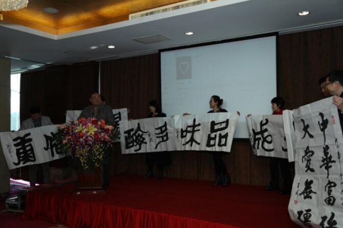 多次在国内外获奖的著名书法家刘奕老师和中国东方文化研究协会教科文专委会秘书长兼书画艺术部主任王威先生为俱乐部挥毫泼墨,分别写下了“大爱大成”、“品味多酶畅享健康”和“中华富强大爱无疆”三幅大字,把现场氛围调动到了极点。