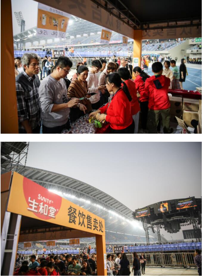 同时,考虑到演唱会开场较早,生和堂人就为大家在演唱会现场搭起了“元气餐饮售卖处”,为大家能在欣赏演唱会的同时,也能品尝到Q弹爽口的龟苓饮品。