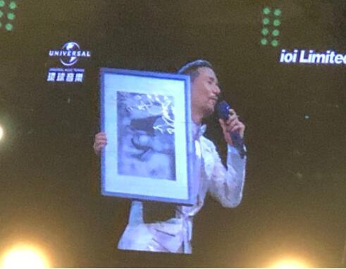 《你的名字我的姓氏》这首歌结束时,张学友亲自为这幅裱起来的画签名赠与这对年轻夫妻。
