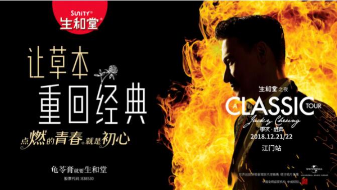 生和堂此次总冠名“A CLASSIC TOUR 学友-经典世界巡回演唱会”江门站,以经典致敬经典,是希望借助巨星的超凡影响力和感召力,向国民传递“中华传统美食龟苓膏”的精髓,传播健康理念,传递积极向上的正能量。