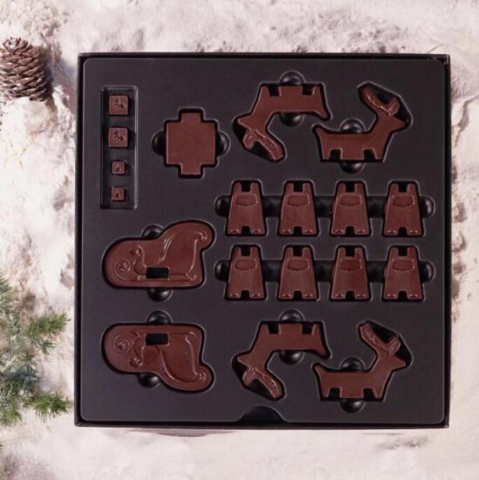 BALCK ZOO 最近新推出的这款乐高式黑巧克力,赋予巧克力以节日的欢乐属性。但制作这款巧克力困难重重,因为巧克力的原料在不同的温度下呈现的状态不同,所以3D打印技术很难解决这个问题,只能从模具的改良和手工艺操作的角度解决技术难题。经历了几十次的失败,终于研发出一套可以批量手工制作乐高式拼接积木的巧克力,这才造就了这一款拼接式的巧克力产品的问世。