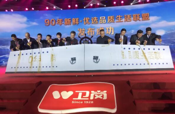 ”90年新鲜·优选品质生活联盟”发布仪式也在会议现场举行,集团领导纷纷登台,共同启动仪式。卫岗乳业及兄弟单位将继续紧密合作,资源共享,信息共享,价值共创。一起携手并进,开创下一个新高度!