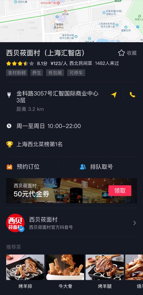 值得一提的是,通过美味认证成为蓝V的商户,在餐厅界面下,还嵌入了“排队取号”和“预订”功能键,用户在心动的同时立刻就能点击行动,完成操作。在平台上不仅实现了“发现美味,连接美味”,更能“获取美味”,真正让抖音成为“带货神器”。美味合作商家中,西贝、外婆家、八合里等知名品牌均已预约入驻,这一功能仅美味商家可享,近期即将上线,敬请期待~