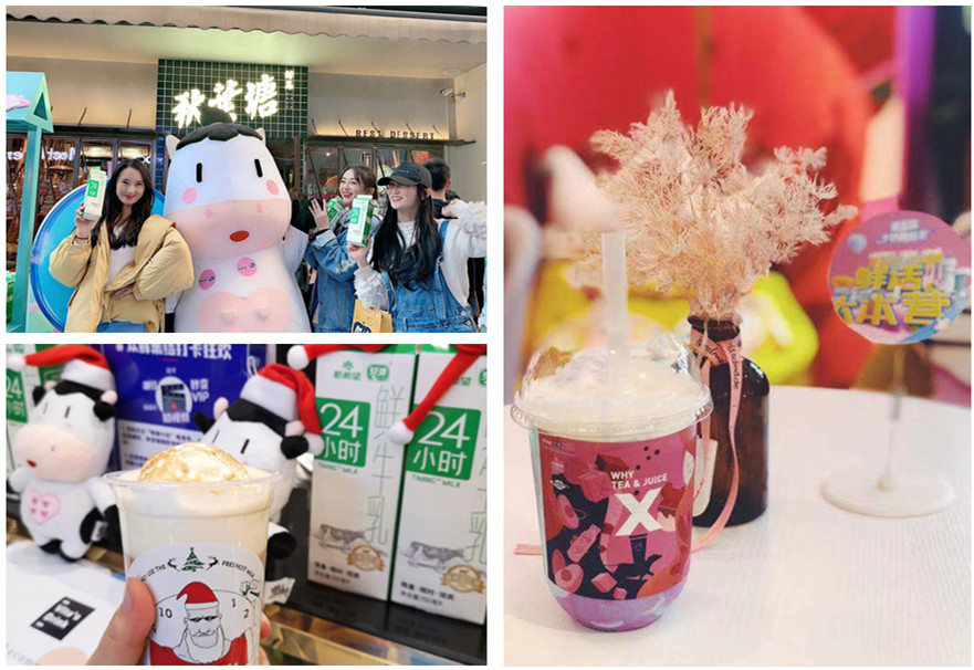 在长沙“星巴克”MĀMĀ茶、咖啡界颜值担当三顿半,昆明工业港风餐厅秋叶塘,杭州古早味饮品鹿谷製茶,成都粉色饮品专门店小啾啾,青岛本土网红茶饮Vita’s Drink……多个网红店纷纷推出了新希望乳业共创新品。