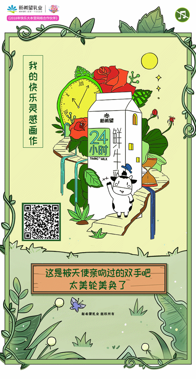 所以,新希望乳业选择在2018年底到2019年初,为粉丝们带来了一场“私人定制”的牛奶社群共创盛宴——“鲜活大本营”。在这场任性的狂欢中,新希望乳业将核心产品、营销场景都交给了年轻人,消费者甚至可以在官方H5里随意涂画,创造属于自己的新希望乳业logo。这样的品牌创新力度,让我们看到了新希望乳业与粉丝一起“逆生长”的勇气。