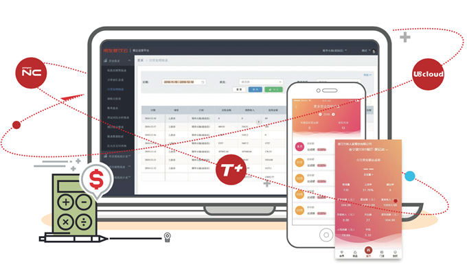 •基于NC/U8C/T+ERP(餐饮行业版)财务管理系统,与前台、中台、后台业务一体化对接,实现及时自动记账。