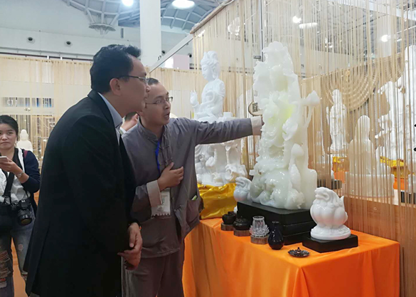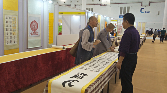 “一带一路佛教文化艺术展示区”请来了四会六祖寺释禅雪法师、美国华严会会长陈绍恭居士、敦煌正觉写经院、国家非遗传承人——恩珠大师、卓珍大师、千年祖庭文化黄龙禅寺、三亚南山寺等单位和高僧大德现场展示各地特色佛教文化。到场参观的观众仔细欣赏各家大师作品,熏陶佛教文化艺术。