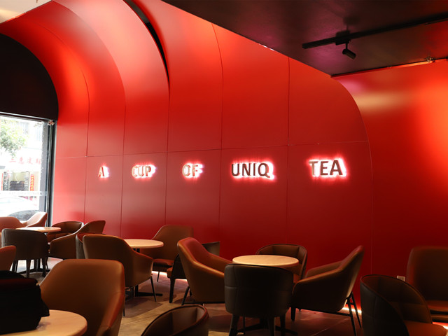 实用性与创意冲突感的研磨,以“U”和圆点艺术为设计理念,打造“健康、创意、轻奢”的时尚茶饮空间。