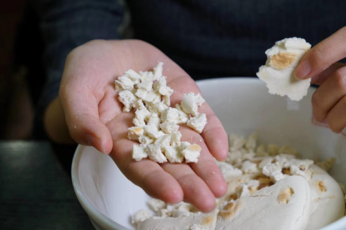 大爷也讲了他的掰馍经验,“常说一分二,二分四这不用说,但还要注意的是,掰馍说白了是掐馍,羊肉泡馍所用的馍都是七分熟,把馍掐成黄豆粒大小不仅能充分吸收羊汤的滋味,还有就是馍小了容易被烫熟。转着掰也会比较快节省时间,我们西安人手劲都特别大,和长期掰馍有很大关系。”