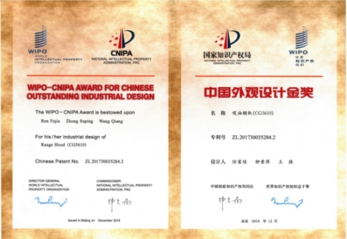 12月25日,由国家知识产权局和世界知识产权组织共同主办的第二十届中国专利奖评审结果揭晓,其中有40项是专利金奖项目,分别是30项中国专利金奖和10项中国外观设计金奖。中国厨电领导品牌老板电器旗下产品——老板油烟机5610(专利号:201730035284.2)榜上有名,摘得中国外观设计金奖。