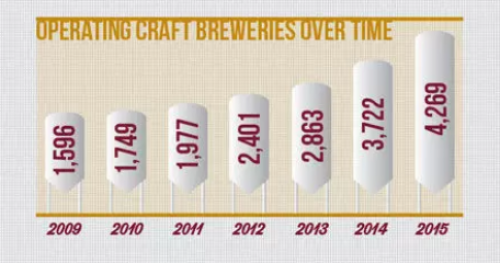 BA对于美国精酿酒厂数量的统计
