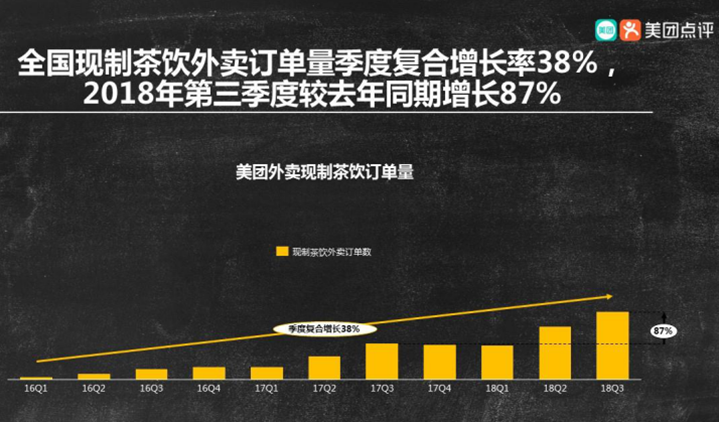 茶饮消费能够实现快速增长,外卖功不可没。根据《2019中国饮品行业趋势发展报告》显示,2018年第三季度全国现制茶饮外卖订单量较去年同期增长了87%。白秀峰认为,外卖小哥能够在20分钟之内将一杯奶茶送到你手上,让消费者能够快速方便地喝到杯茶,也在无形当中增加了供给。如果今天没有外卖小哥,那一杯奶茶对于消费者来说,也是可喝可不喝的,外卖在无形当中对整个茶饮市场的消费增加带来了巨大的动力。