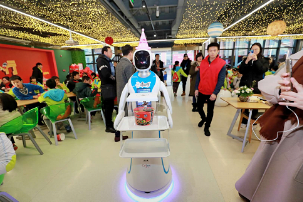 ▲AI机器人不仅送面,还送生日蛋糕