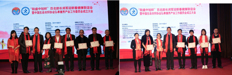 2019年1月9日,由中国生命关怀协会主办,中国生命关怀协会弘孝康养产业工作委员会、全民健康工作委员会、慢性病防治援助工作委员会、中盛祥和(北京)文化发展有限公司、健康中国品牌联盟承办的“联盛中旭杯”2019百名部长将军迎新春健康联谊会暨中国生命关怀协会弘孝康养产业工作委员会成立大会,在北京隆重开幕!本次联谊会得到了热爱健康,热心公益事业的300余位部队首长和国家机关老干部的特别关怀,以及来自社会各界人士的大力支持!CCTV综艺节目主持人陈可欣女士主持了本次开幕式。