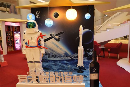 长城天赋展位上,天赋蓝与航天蓝成为展位的主色调,梦幻的星空勾勒了长城天赋葡萄酒如宇宙般浩瀚的的广阔梦想。