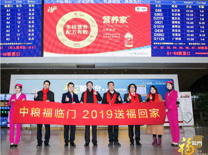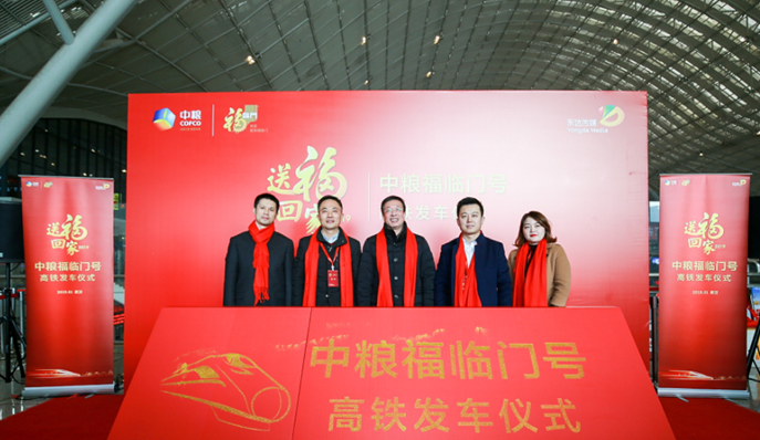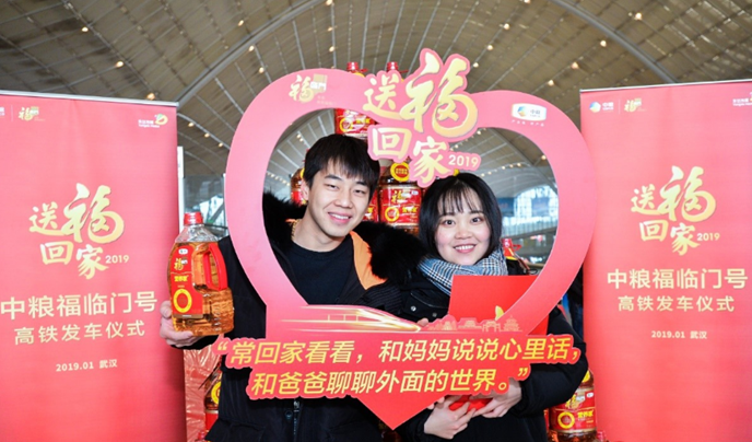 1月16日,中粮福临门号高铁发车仪式在武汉举行,正式拉开“2019送福回家”春节特别活动的序幕。据了解,在2019年春运期间,将有四组“中粮福临门号”高铁驰骋在华夏大地,贯通京沪线、京广线、郑沪线三大交通动脉,送万千游子回家过年。