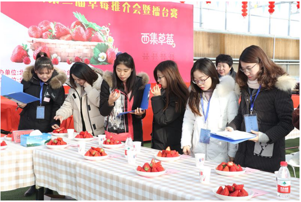 为了将自家最优质的草莓选出来参加此次评比,当天一早,各种植草莓的农户们便早早进入大棚挨个挑选,“希望自家的草莓能够在众多样品中胜出,这是对草莓品质的认可,也是我们打出品牌的一个非常好的宣传途径”,前来参赛的一位大爷抱着自己的一箱红彤彤的草莓笑着说到。