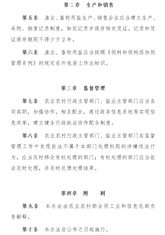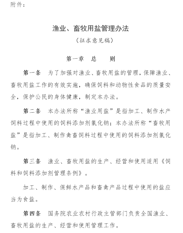 工信部公开征求对《渔业、畜牧用盐管理办法(征求意见稿)》的意见