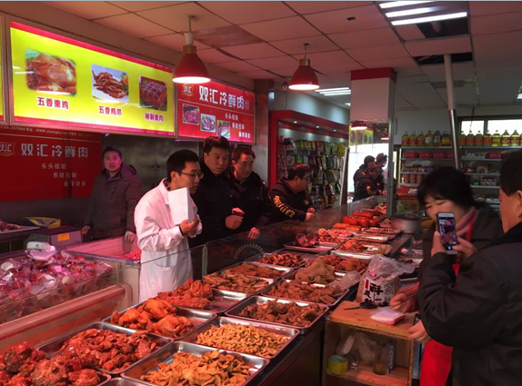 (上图为检测人员抽检肉类食品时的情景)