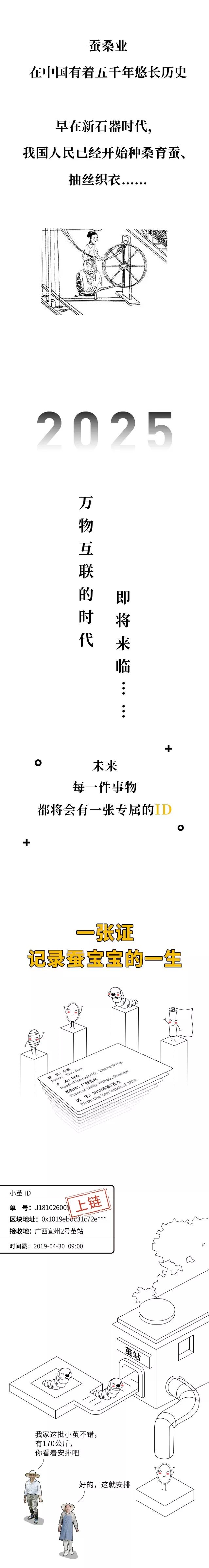 既然,上链的人、货、场都在同一个信誉池中,那么上下游的交易将变得简单可信而且安全,金融机构给企业贷款的风险将大大降低,惠及面将更广。 其实,不要以为区块链距离我们很远,现实生活中,我们早已被悄悄的“区块链”。 ➤举个栗子 淘宝“花呗”,淘宝凭什么敢给你授信8000元让你买买买?背后也是区块链逻辑。 你在淘宝的眼里并不是一个人,而是亿万组数据中的一组,这组数据包含了你过往的消费记录、身份信息、银行信息、家庭信息、资产状况等。这些数据共同组成了一幅关于你的数据拼图,淘宝会根据这幅拼图,以数据算法,决定是否给你授信以及授信额度。 淘宝怕你不还钱吗?根本不怕。因为,如果你违约,首先阿里的各大生态企业会拒绝你,支付宝可能不能用,银行卡或许被冻结,意味着你的吃、住、行将受到限制,在高度互联网化的今天,违约者瞬间会变成一个“废人”。而且,这个不好的信誉可能一生不可篡改。想想都觉得可怕。 所以,马云说,未来将是一个信誉社会。随着社会信用生态的数据化建设,信用注定越来越透明,商业注定越来越高效。 4.中农网发布 我国第一个茧丝区块链项目 中农网是我国领先的农业B2B平台企业,已经为全国超过7万家客户提供了服务,平台 GMV突破887亿元。中农网CEO孙炜认为,我国目前正是一个技术、产业、社会、金融进入价值大交叉的时代,定制化正在替代规模化,个性化正在替代标准化,智能化正在替代程序化,数字化正在替代实物化。