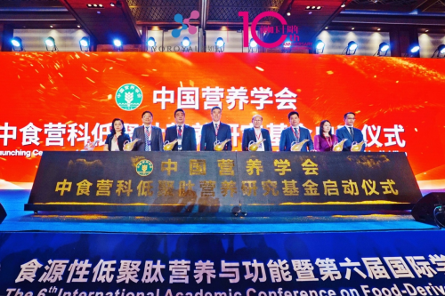在“健康中国2030”的国家战略指导下,为鼓励和支持关于食源性低聚肽的营养与功能方面的研究,促进我国营养科学技术的发展,为推动营养健康食品的发展提供科学依据,在中国营养学会的指导下,成立了“中国营养学会-中食营科低聚肽营养研究基金”。会议现场,由中国营养学会、中国食品发酵工业研究院、颜如玉集团等基金发起方共同启动了“中食营科低聚肽营养研究基金”。