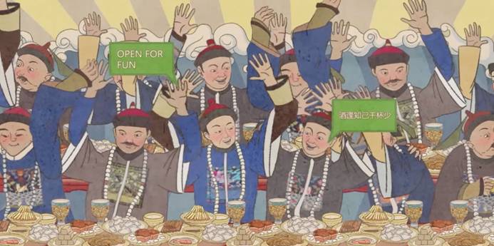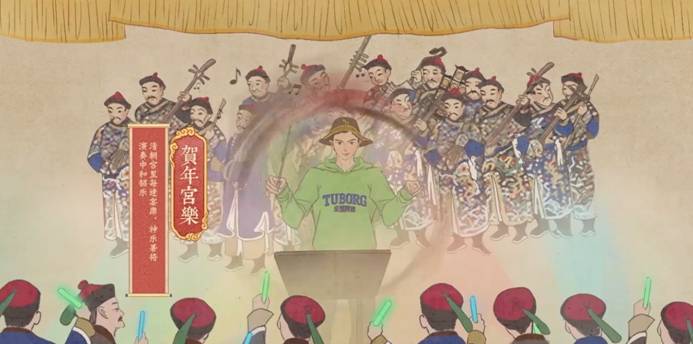 这次与故宫的跨界合作,还有一个不得不提的就是乐堡啤酒用H5“复活”了故宫里的新年。在记载故宫新年盛大场景的超长千古名画《紫光阁赐宴图》里,乐堡用嘻哈说唱给皇家宴会注入浓浓的潮流感,百年不变皇家年俗也焕发更多别开生面的玩味,给消费者带来一种皇家新年跃然眼前的感觉,并对传统年俗有了新的认知。