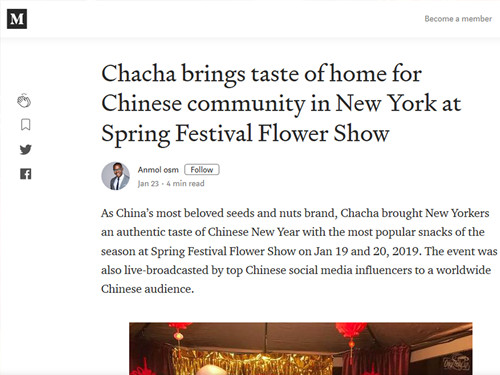 为此,产品畅销全球43个国家地区、始终响应出海政策、全球化站位的洽洽,倾心打造“洽洽全球年味小馆”,落地美国纽约“猪年迎春展销花市”,为海外华人、外国友人带去最温暖的年味。