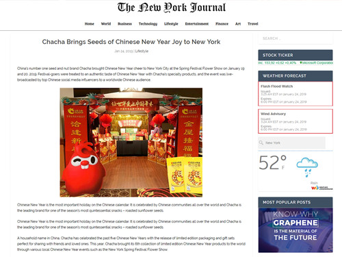 专注坚果质造20年的洽洽抢先洞察全球吃货对中国春节的热切期待,继携手人民网·人民健康联合11家年货支柱品牌共同发起建立“中国年味品牌代表联盟”后,持续关注中华文化及中国品牌的全球性输出,倾心打造“洽洽全球年味小馆”,落地美国纽约“猪年迎春展销花市”,以“洽洽是陪伴,让年味更暖的”的品牌形象,发出坚果界春节营销最强音。
