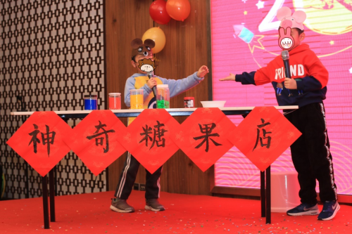 这是这场充满爱与感动的联欢会,由爱好老师、小朋友以及志愿者们奉上了合唱、舞蹈、乐器演奏、魔术等精彩节目。爱好音乐班的5位小朋友表演了《猪年快乐》舞蹈,他们头戴可爱小猪帽,跟随欢快的音乐节奏舞蹈,萌翻全场。度度和乐乐形象生动的演绎了《神奇糖果店》绘本朗读,使观众仿佛置身于神秘的童话世界,感受到五彩糖果的神奇力量。