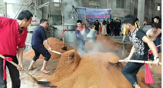 二、同一批原料要经过九次蒸煮、八次加曲、七次取酒,历时整整一年。