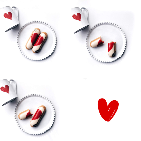 L'Eclair de Genie特意为情人节准备了一对“爱心“,就像相爱的人,要带着满满的情意在一起,爱的心才完整。这两款泡芙,一只清香浪漫的玫瑰味给女生,另一只焦香微咸的焦糖海盐给男生,或是一人一口分掉吧,爱就是要和对方一起分享美味才完美。