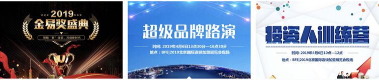 为了配合展会,组委会还举办了连锁行业的“奥斯卡”——金易奖盛典将评选出一年一度的行业金奖;为投资人精心打造的“投资人训练营”,将邀请行业内资深专家现场授课答疑,创业路上可能遇上的一切问题,都可以在这里找到答案;超级品牌路演活动,通过现场直播、独家专访等形式,获得超多品牌曝光的机会。广大投资者将近距离面对面了解加盟品牌,快速锁定赚钱的好项目。