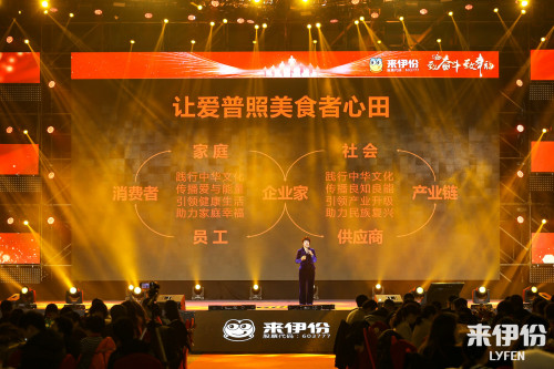 来伊份董事长施永雷先生首先上台致新年祝辞,他说,回顾2018年,顺应消费升级的时代潮流,来伊份“万家灯火”线下门店稳步扩张;来伊份移动智能APP获得技术与应用的重大突破,“社区场景”、“互娱体验”、“钱包功能”相继实现,注册用户总数已超千万;在行业内率先布局自助售货机,持续打造以门店为核心的智慧化零售终端,为消费者带来更为便捷的购物体验;商品开发推陈出新,“原味瓜子”、“坚果塔”、“原味蛋糕”、“亚米牛奶”等广受消费者的欢迎;原创3D动画《超级伊仔》收视飘红;亚米Youngme亮相进博会;食品质量安全追溯体系的构建等项目获得社会广泛关注......